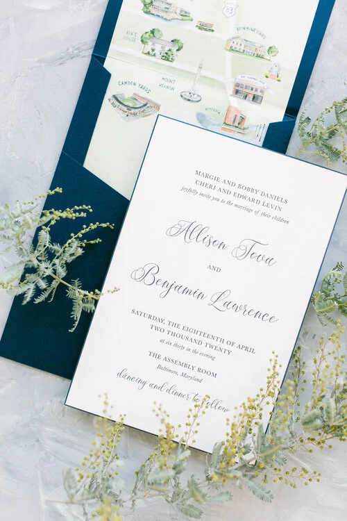 My fiance and I had a clear vision for our invitation including custom watercolor art we wanted to use as a liner and Victoria was so helpful in bringing our vision to life. She made excellent suggestions along the way about envelopes, addressing, fonts, and insert cards and was able to work seamlessly with us from several states away. Our final invitations were beyond gorgeous and our family and friends absolutely loved them. Not only are you in wonderful hands with Victoria and her team, but she makes the process so easy and fun along the way!”